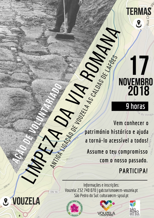 Numa iniciativa intermunicipal, as autarquias de Vouzela e de São Pedro do Sul vão promover uma ação de voluntariado de limpeza da via romana, que se realizará no dia 17 de novembro, sábado, a partir das 9h.