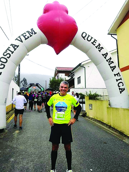 AM – Ah ah ah Atleta… quem ouvir até diz que é verdade… como disse, a minha formação inicial é de Educação Física. Logo por aí… mas, ainda antes de ir para o ensino superior fazia umas corriditas… joguei futebol, mas rapidamente cheguei à conclusão de que a bola me atrapalhava imenso…(risos) há cerca de 6 anos começou a estar na moda a corrida de rua, com o aparecimento de muitos grupos informais de corrida. Foi nesse contexto que iniciei a correr mais assiduamente integrado no grupo “correr Viseu”. Até ao aparecimento da pandemia era quase matemático, às quartas e sextas fazer os 10Km da praxe com o grupo, pelas ruas de Viseu. Participei em muitas provas, o que é diferente de disputar muitas provas, com o objetivo único de terminar. Terminei sempre! Provas de 10 kms, muitas meias maratonas, uma maratona, alguns trails, enfim… bons momentos… agora quase não corro. Então nesta fase do ano com trabalho todos os dias até fora de horas… mas, é engraçado reconhecer-me como praticante de desporto. É minha amiga no Facebook, mas um pouco desatualizada ultimamente. (risos)