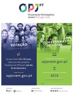 A fase de votação dos projetos está a decorrer até 16 de dezembro, através da página do OP Jovem (https://opjovem.gov.pt/) e via SMS gratuita para o 4310.