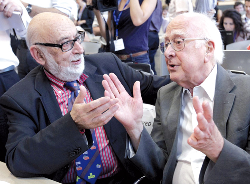 O referido prémio reveste uma atribuição colectiva: ao belga François Englert e ao inglês Peter Higgs